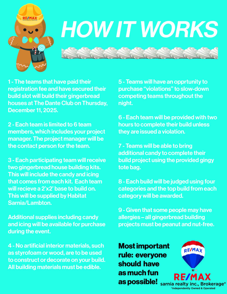 Compete to build a gingerbread home to help build a home for a family in Sarnia/Lambton!